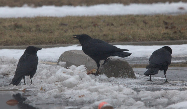| American Crows eating bread |