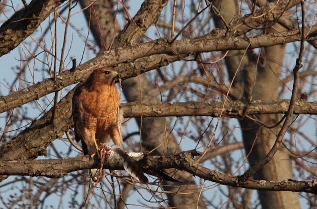 Please be aware, this post has some gory content of the Red-shouldered Hawk eating another bird of prey's wing.