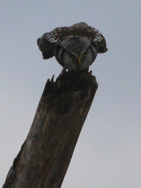 My family and I have started a challenge for ourselves! We're going to try and see at least one bird of prey (or bop) a day for as long as we can! This is day 22 of our streak. This page includes 1 Northern Hawk Owl, 10? Rough-legged Hawks, 1 Bald Eagle. Please see the rest of our days on the "BOP a day" page.